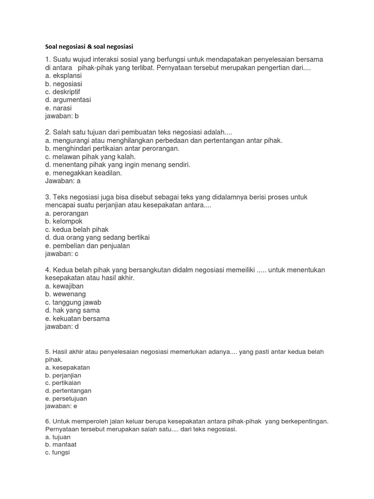 Latihan soal pilihan ganda materi teks negosiasi beserta jawaban.